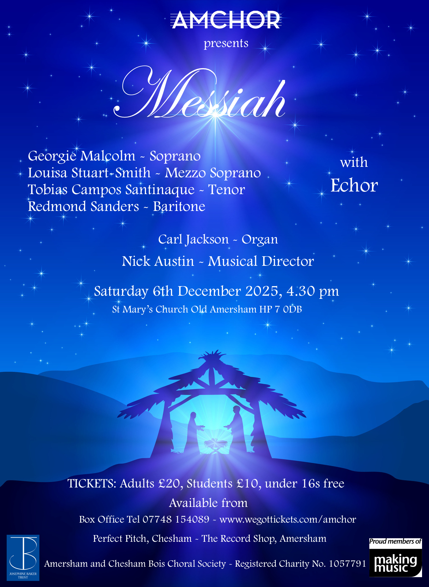 Amchor is a friendly and well-regarded choral society, soon approaching its centenary. We currently have some 60 singers, and we are always keen to welcome new members who share our enjoyment of choral music.